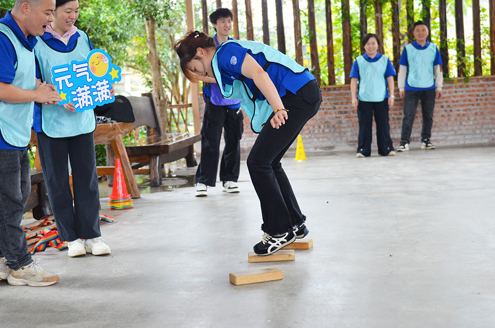 「摸石过河」—— 三块砖头,一方天地。队员们需要以最稳健的策略和平衡感,步步为营,迈向终点。它教会我们,无论是产品研发还是市场开拓,都需要脚踏实地,步步为营,在资源的合理规划与使用中,实现目标的高效达成。